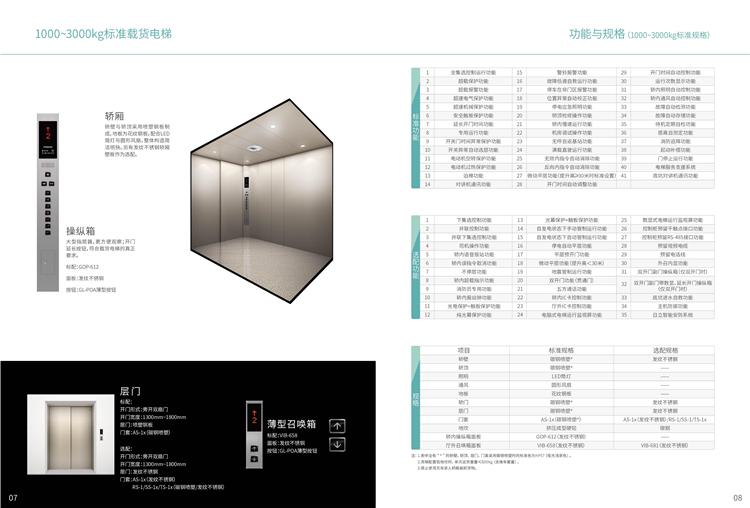 | 层门 | 旁开双扇门/中分双扇门 | 载货 | 1000/1600/2000/3000kg |