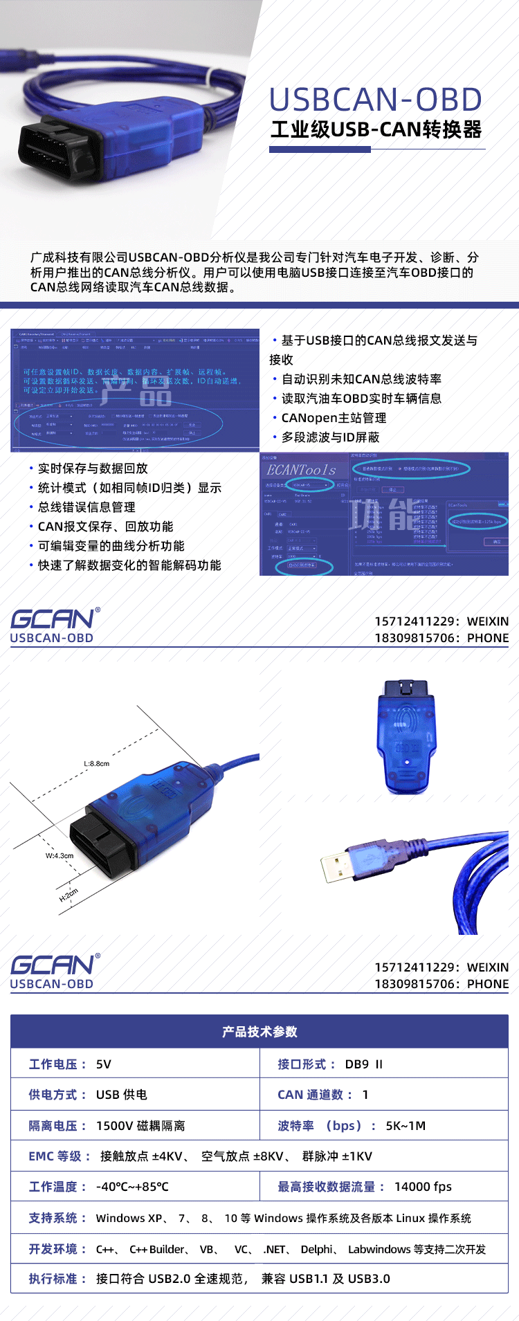 | 品牌 | GCAN | 型号 | USBCAN-OBD |