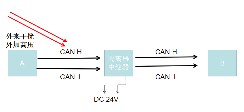 CAN-bus接口采用电气隔离,隔离模块绝缘电压:DC2500V;