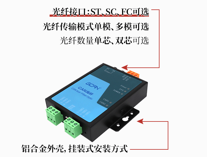 光纤接口SC、ST、FC可选