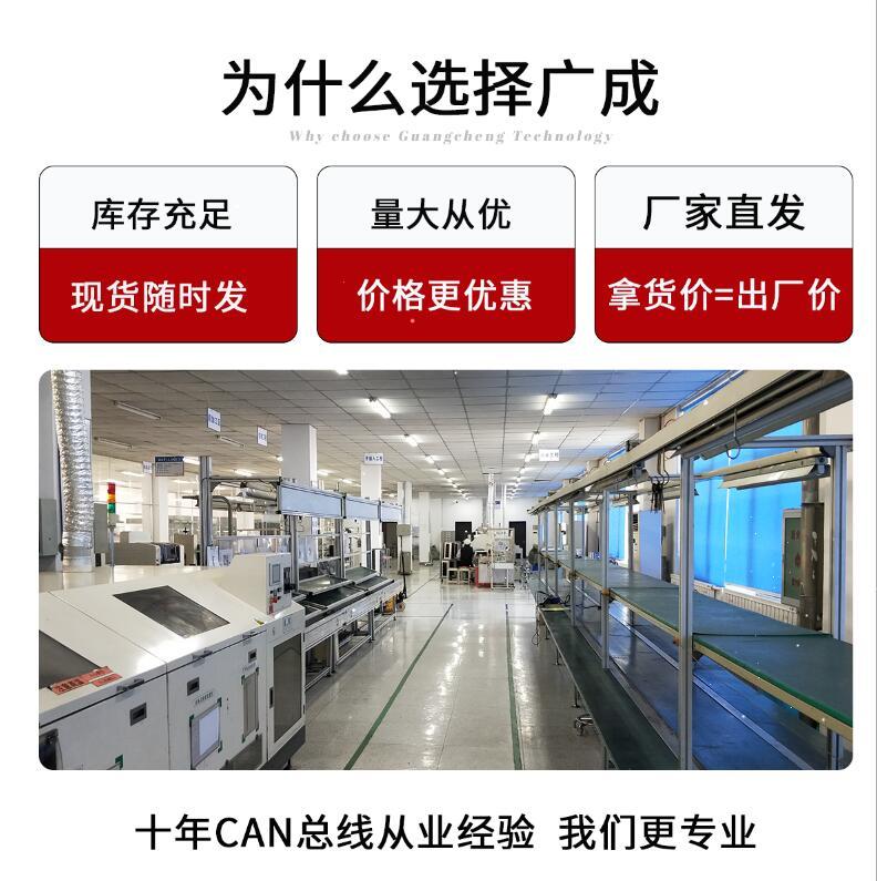 | 终端电阻 | CAN总线自带120Ω终端电阻,可通过拨码开关选择 | 转换数据流量 | 8000帧/秒(可达CAN总线吞吐量理论值上限) |