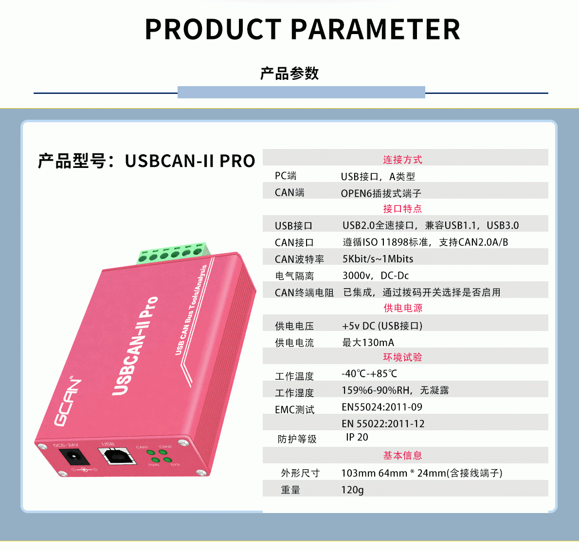 | 品牌 | GCAN | 型号 | USBCAN-II Pro |