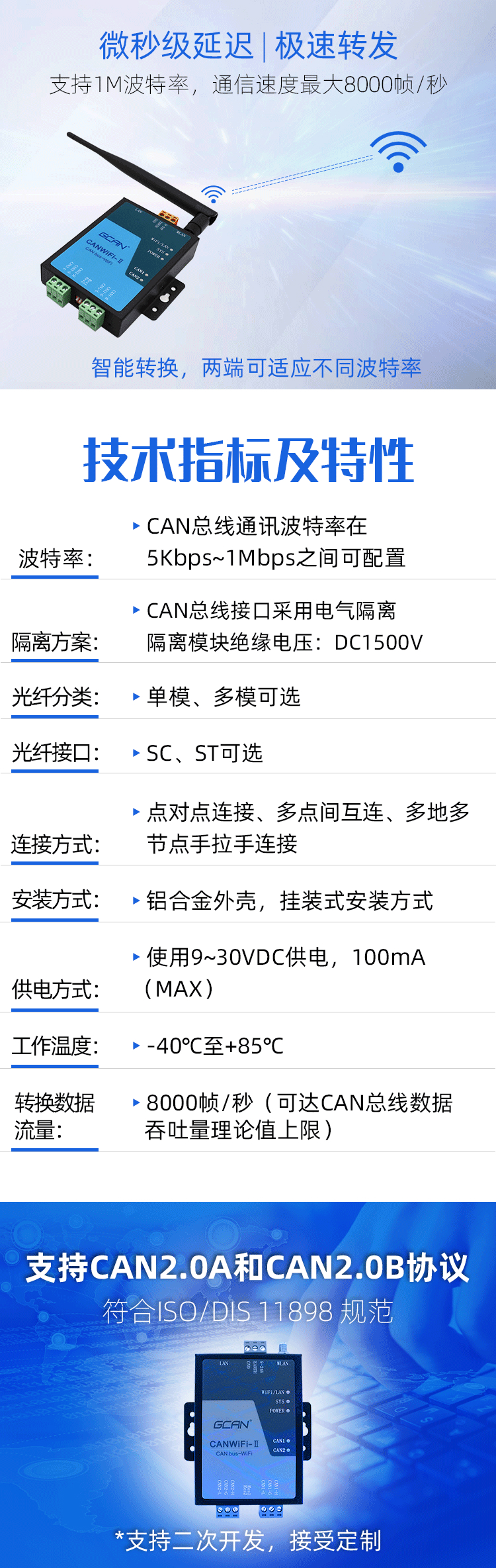 同时广成科技还可为客户提供WIFI转CAN定制服务,可根据您的使用需求,进行定制化生产!