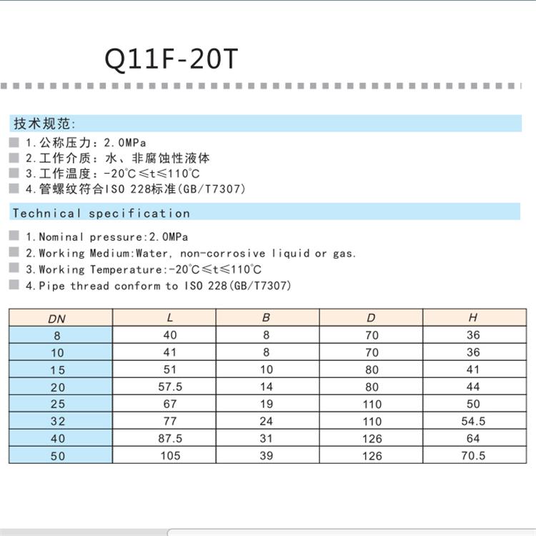 | 品名 | 黄铜球阀 | 公称压力 | 2.0Mpa |