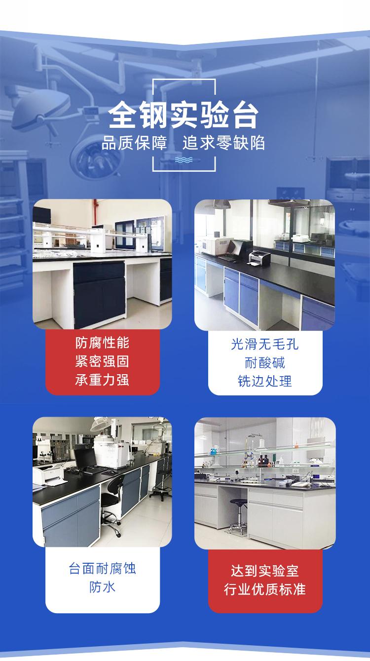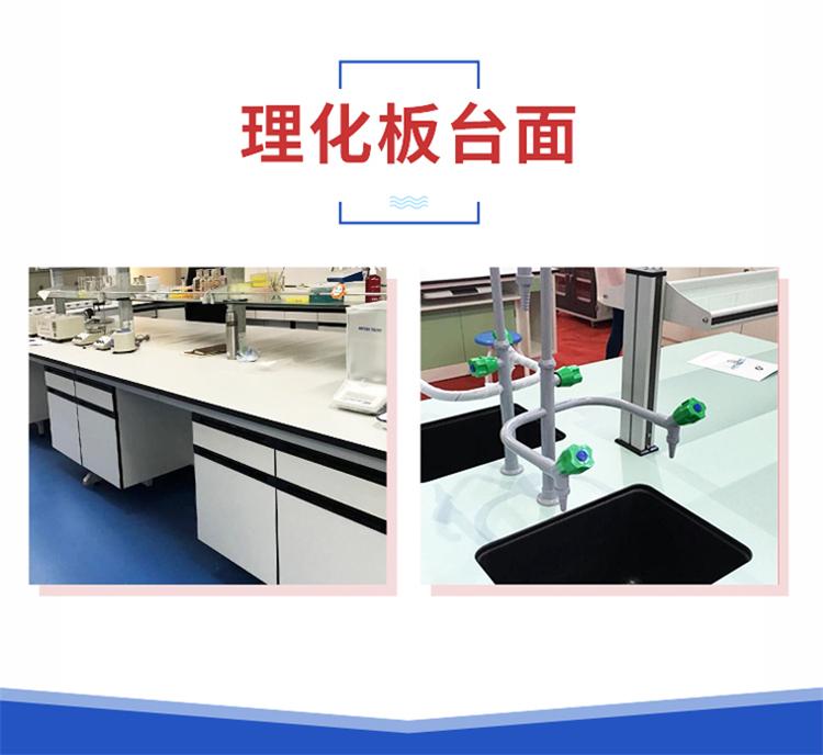 台面:一般采用环氧树脂板、实芯理化板等,表面经技术处理,光滑无毛孔,耐酸碱、防腐蚀,铣边处理,台面耐腐蚀、防水均达到实验室行业优质标准。