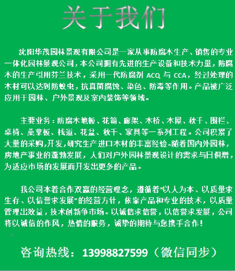主营:利用互联网经营园林景观材料、防腐木、炭化木批发零售及现场安装。