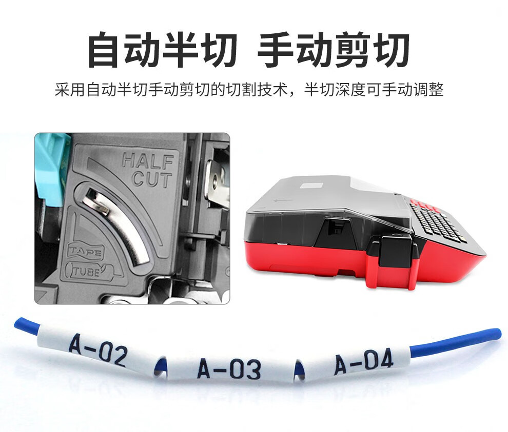 2、一分钟可打印和半切50个20mm长每段输入7个字的套管