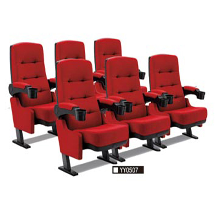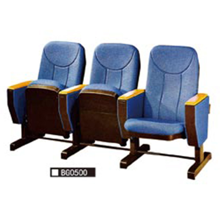 礼堂椅主要结构由椅座、椅背、扶手、书写板和站脚几部分构成。支架采用冷轧钢冲压、焊接、打磨及表层高温静电喷涂处理,脚架是铝合金,脚架一般采用地面固定结构,也可根据场地需要改用活动脚;座椅及靠背均采用高弹力定型海绵+多层板内板+麻绒布面外边,座背外壳可采用PP聚丙烯工程塑胶或多层板贴木皮喷漆面;扶手面采用进口实木喷漆面;写字板可采用PP工程塑胶或木板面。座椅一般会带有静音自动归位功能,写字板为内藏扶手式结构。