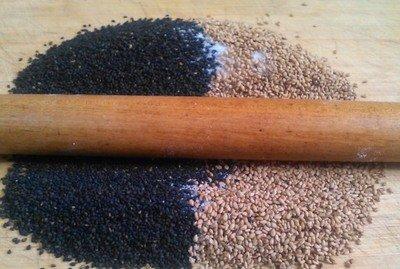 3、把降温后的黑芝麻放在干净的保鲜袋中,扎好口,再用擀面杖来回擀,要把它压碎,取出以后放入少量精盐,调匀以后就是自制的芝麻盐,平时吃面或者吃馒头时都能搭配适量芝麻盐来食用味道特别好。