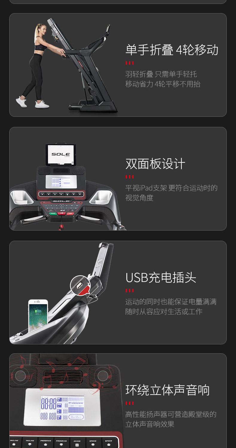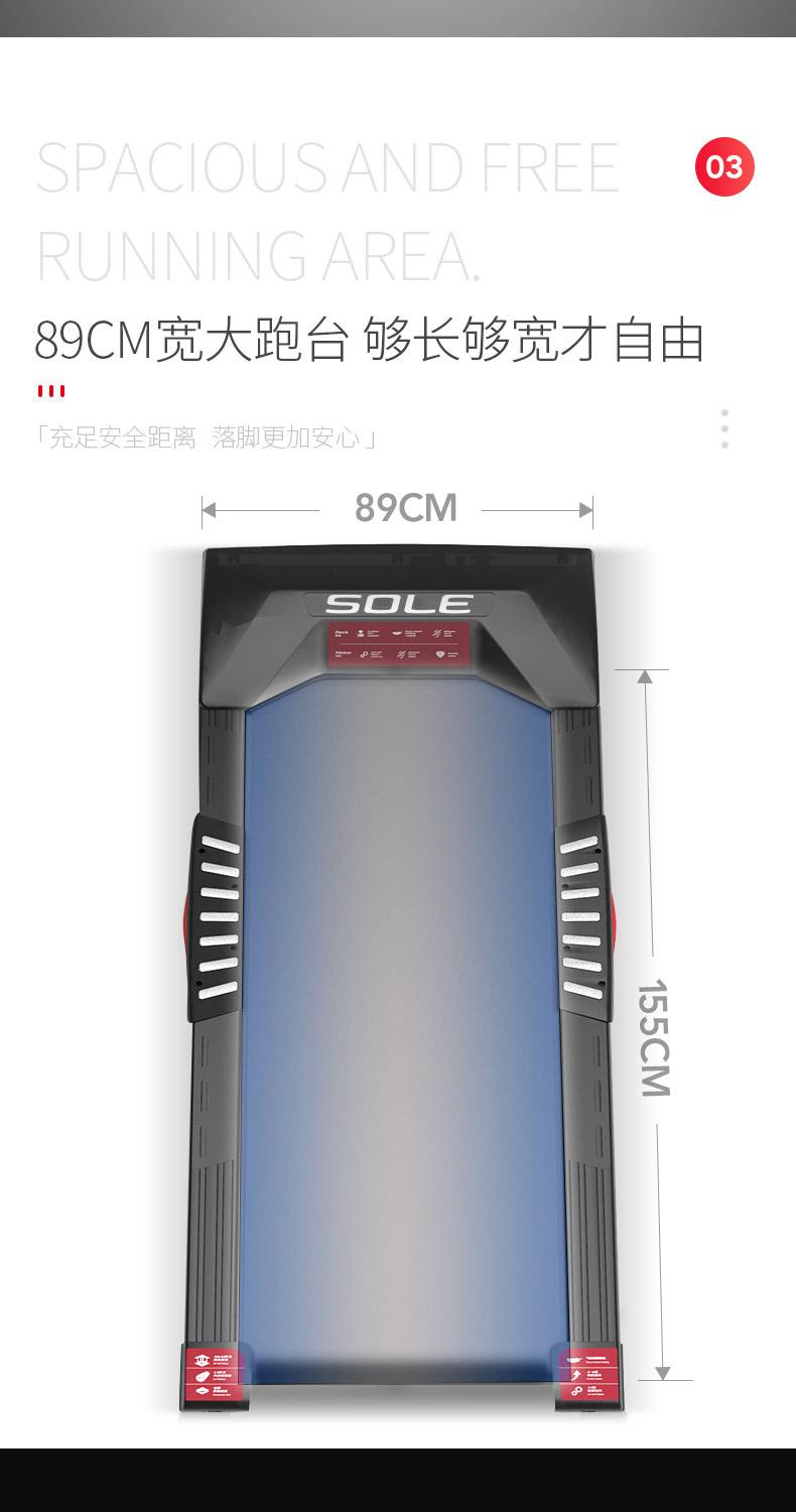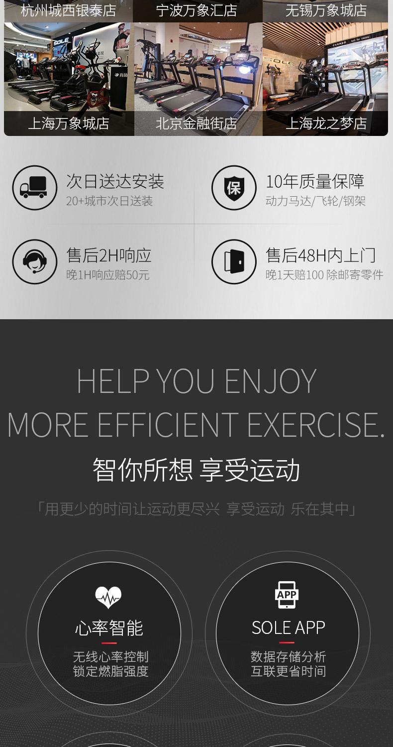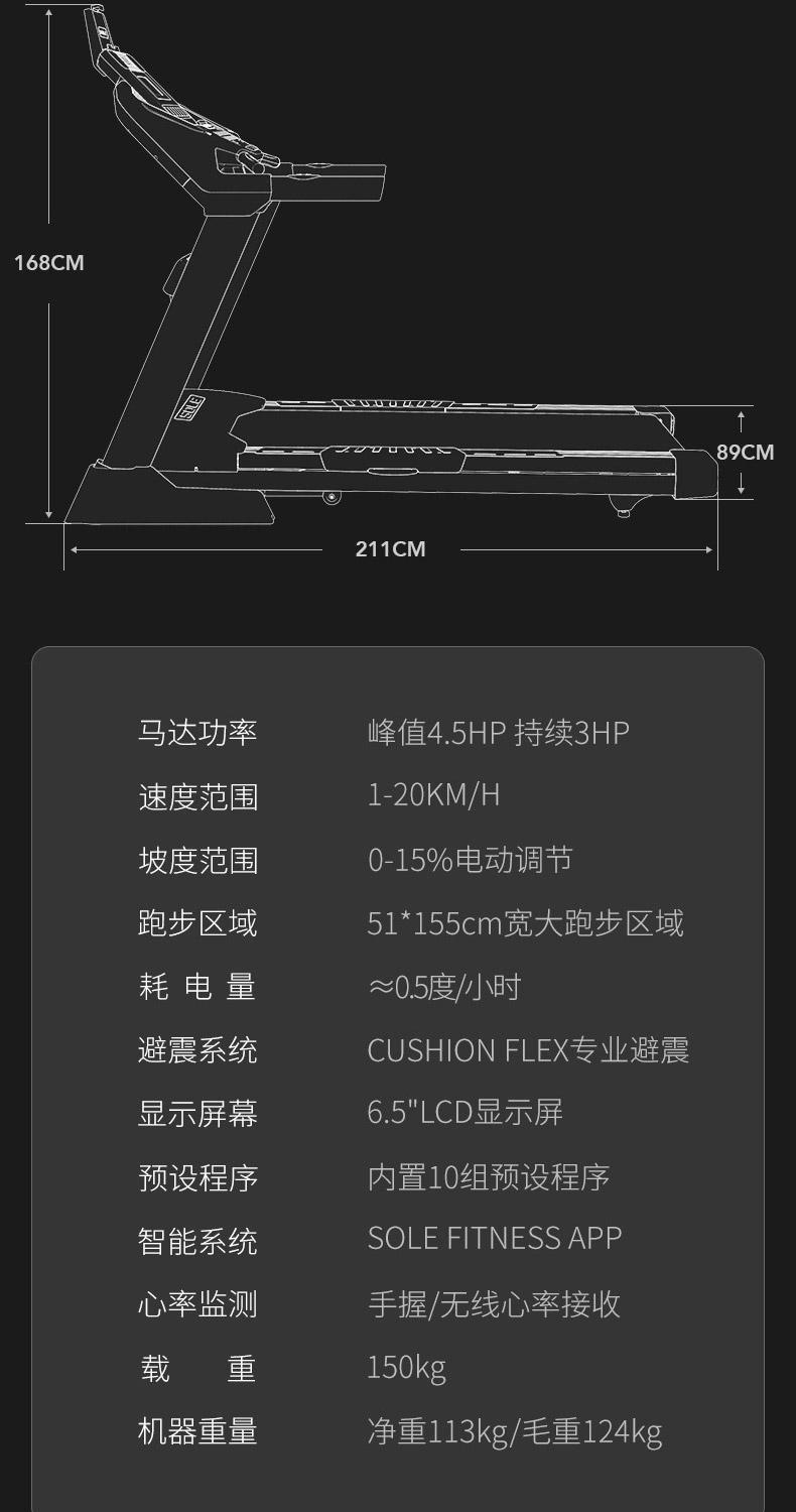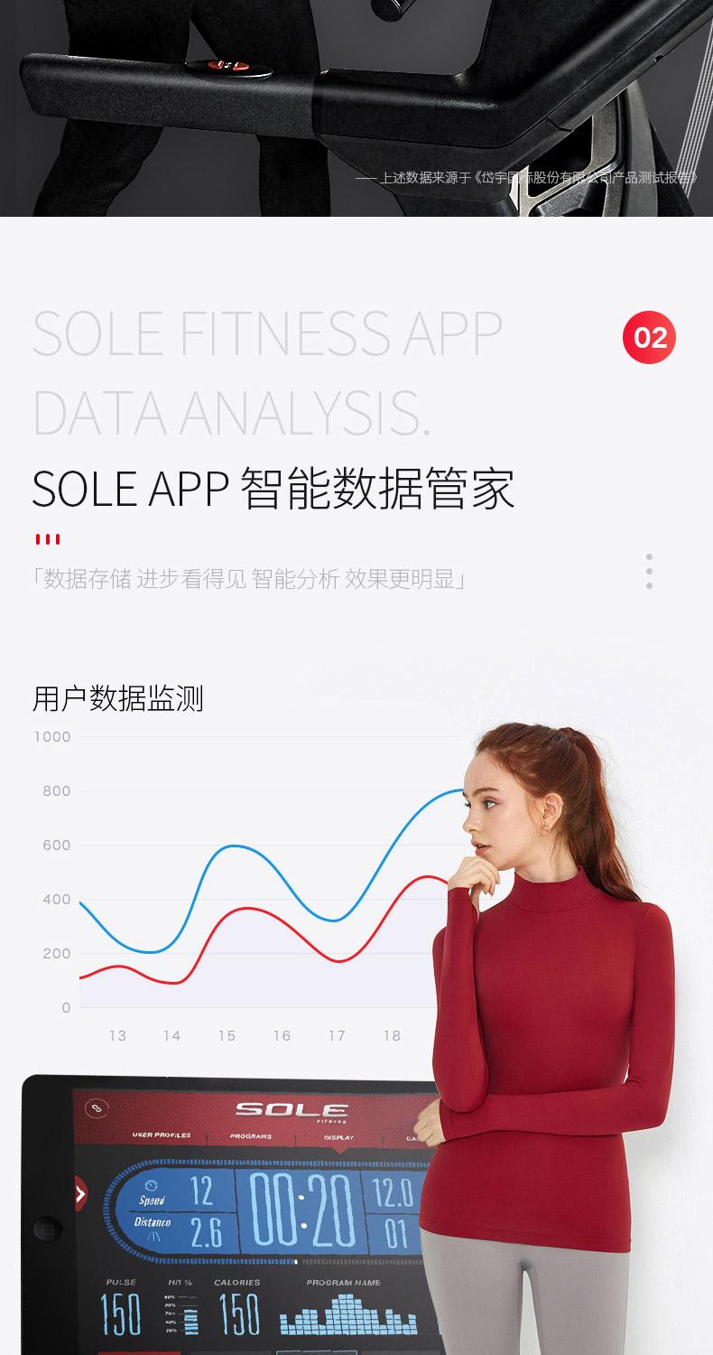 | 减震系统 | CUSHION FLEX减震系统,降低冲击力,保护膝关节 | 智能系统 | SOLE FITNESS APP控制机台,数据存储;SPAX私教APP |