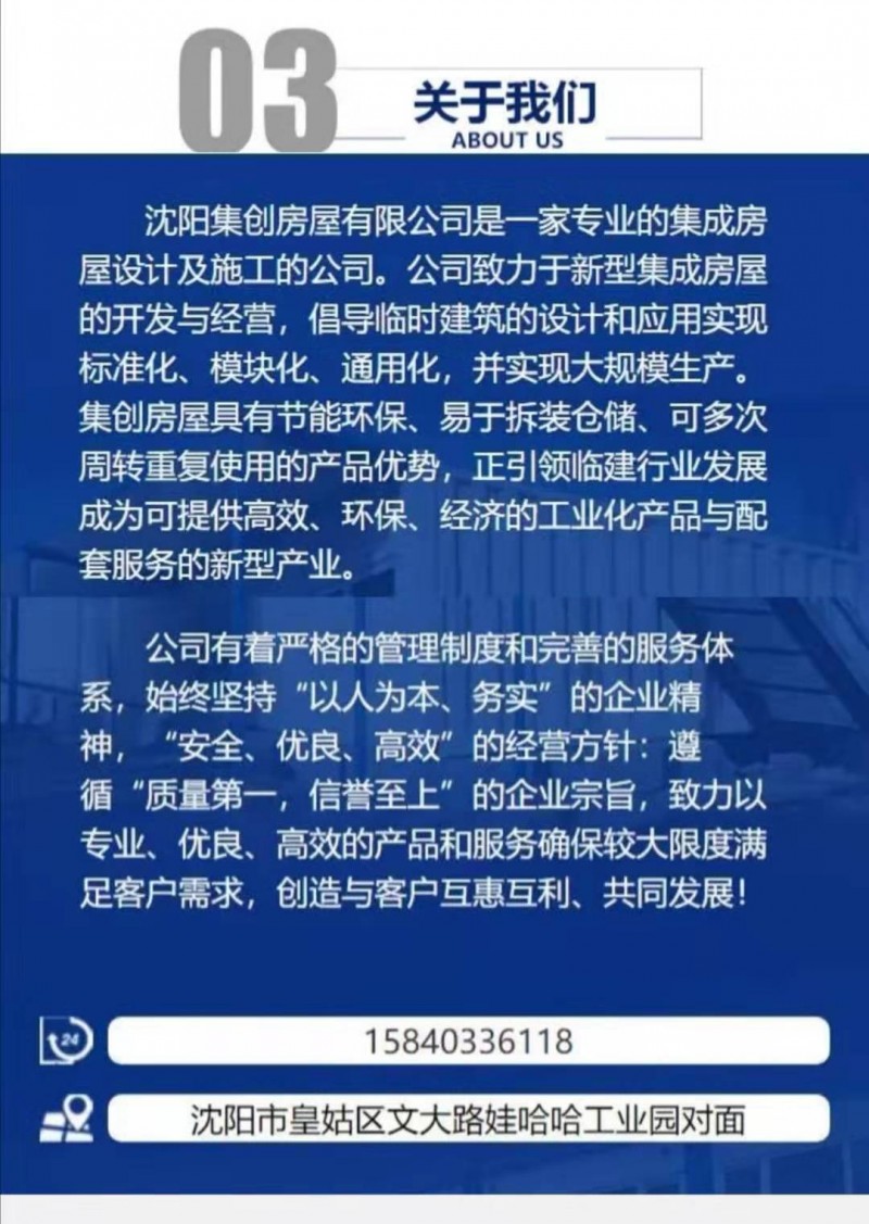 公司现有三大系列产品,广泛应用于建筑工地,旅游度假,公共商业,政府安置。市政临建用房等领域。24小时咨询电话:15840336118。