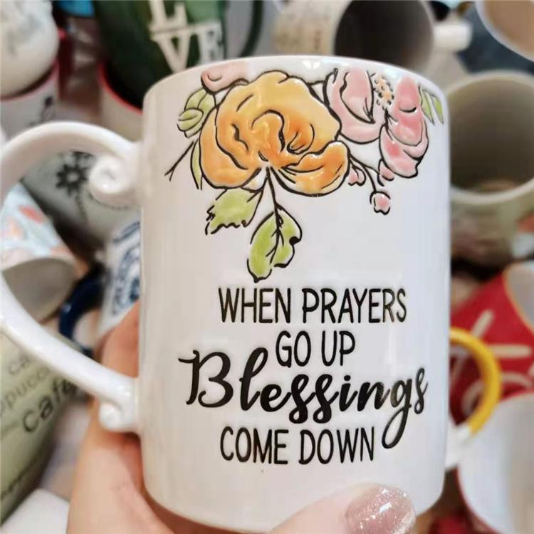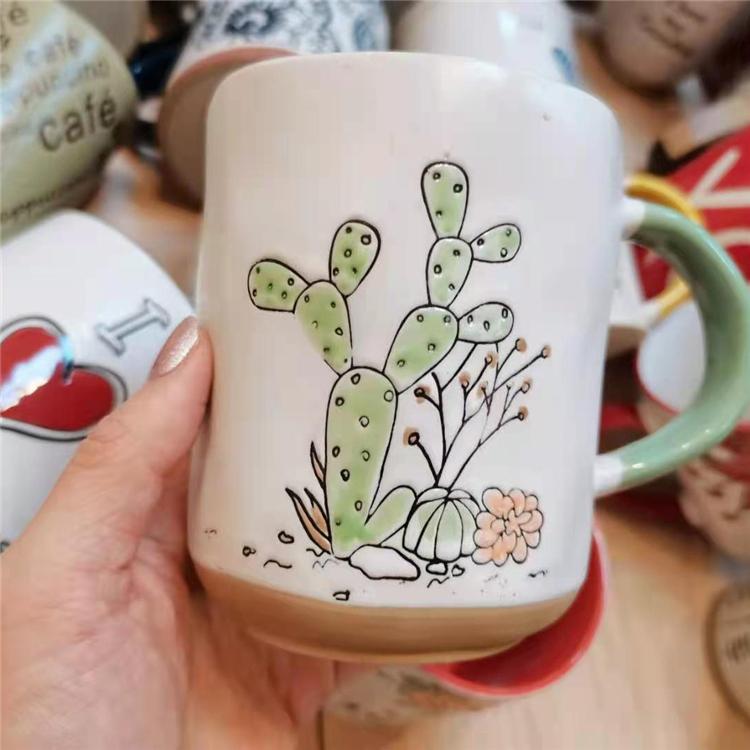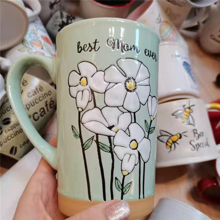 彩绘浮雕大水杯 创意陶瓷杯子 陶瓷餐具 陶瓷杯子厂家