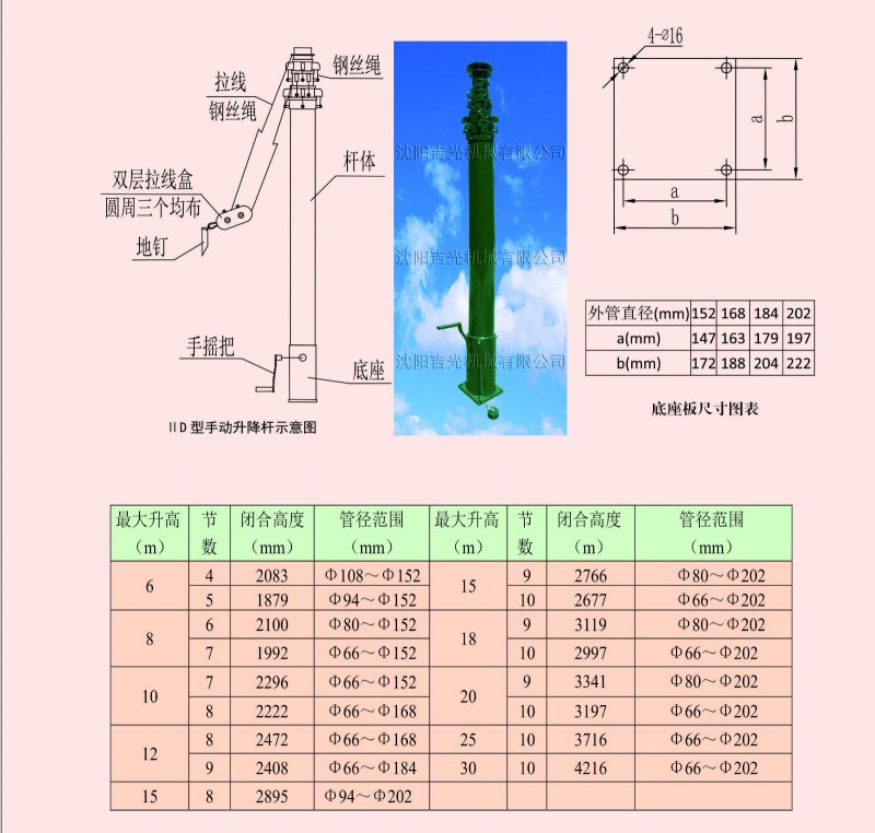 主营:升降杆、升降塔加工、销售、维修、技术开发。