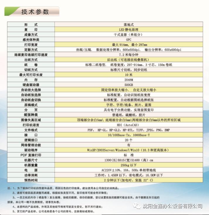 | 成像方式 | 干式显影(单组分) | 打印宽度 | 最大914MM/最小297mm |