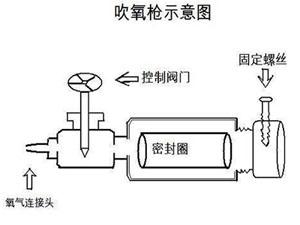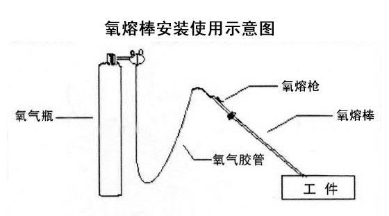 氧熔棒需要配合氧熔和氧气瓶才能使用,因此,在使用氧熔棒之前,我们要对其进行正确安装,下图是氧熔棒工作时的安装示意图。