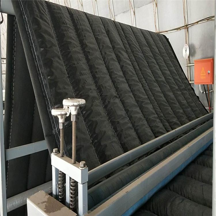 面料:牛津布、强力毡、覆膜毡、进口PE编织布、军工化纤防雨布等,用户可根据自身情况自由选择。内部为蓬松的纤维棉(服装厂下来的边角料加工成棉花状),重量在3-7市斤/平方米。优点:价格低廉(7-13元/平),不易被大风吹起,内部为蓬松的纤维棉,质地柔软紧紧贴在凹凸不平的塑料薄膜上,冷空气不能从被下直接进入(众所周知;热量传递有三种方式:热传导、对流、辐射)而我们采用的方法是将每条保温被用粘扣连为一体,再用卷帘机卷放,完全封闭,防止对流发生;纤维棉经加工做成非常蓬松携带大量静态空气(空气的导热系数0.023W/mkh,导热系数是该材料一米厚一小时这个面与那个面的温度差),大大减慢了热传导的速度;纤维棉进水后干燥快,迅速蓬松,回弹性好,长期使用不影响保温效果。