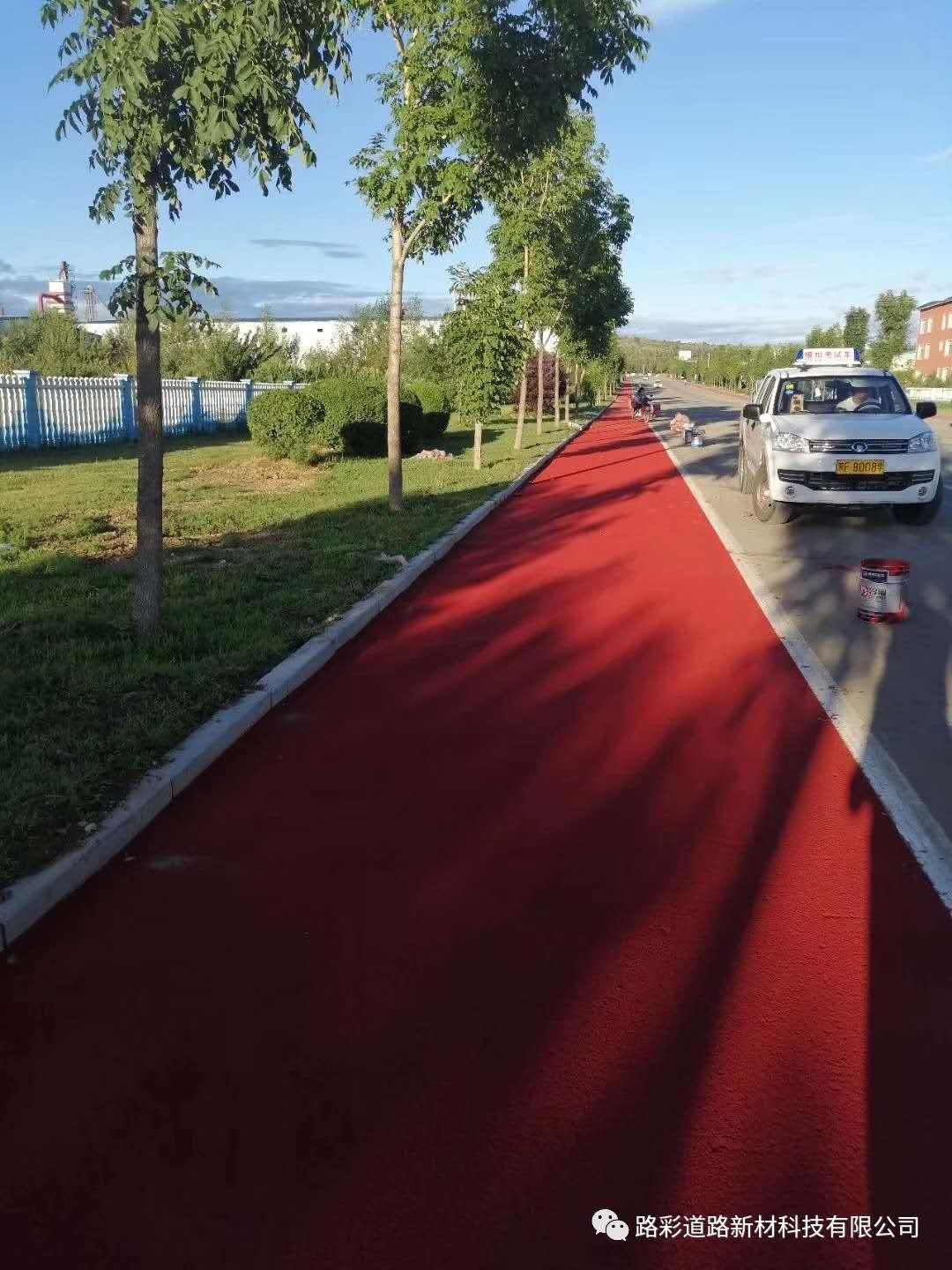 彩色喷涂沥青是薄型彩色路面,颜色鲜艳、靓丽、持久,与原面层的粘附性好,强度、耐候性、耐磨性佳。采用喷涂工艺,直接铺筑在稳定的沥青路面或水泥混凝土等面层表面,可根据景观设计或交通的特殊要求设计各种亮丽色彩。