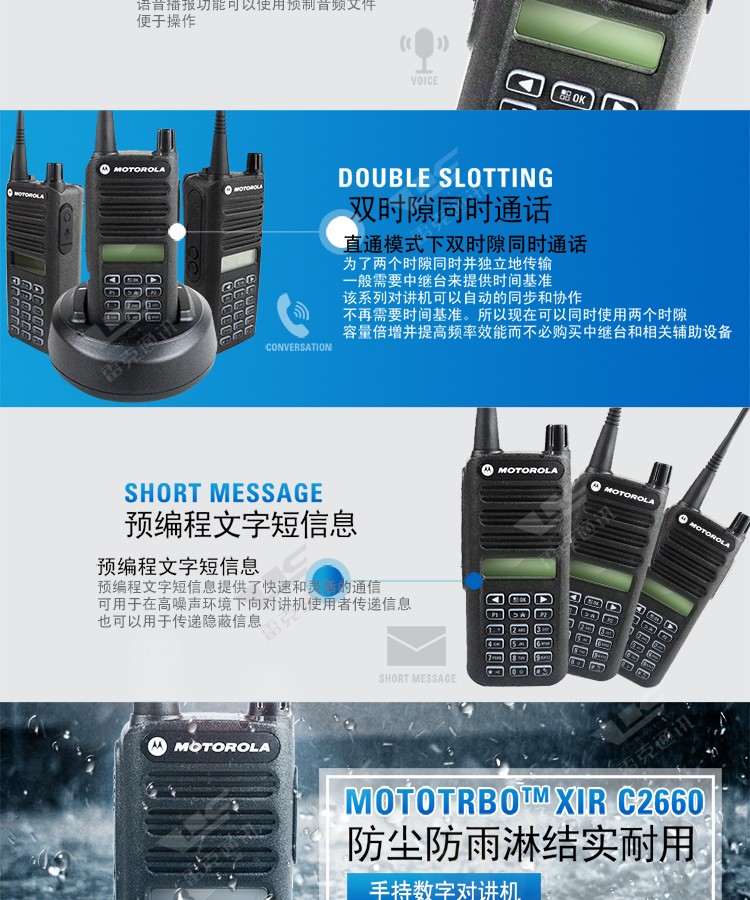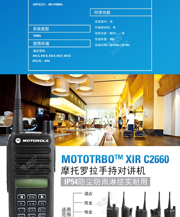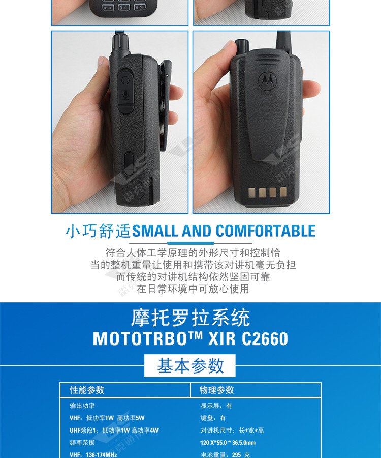 | 对讲机尺寸(高) | 36.5mm | 信道间隔 | 12.5/25kHz |