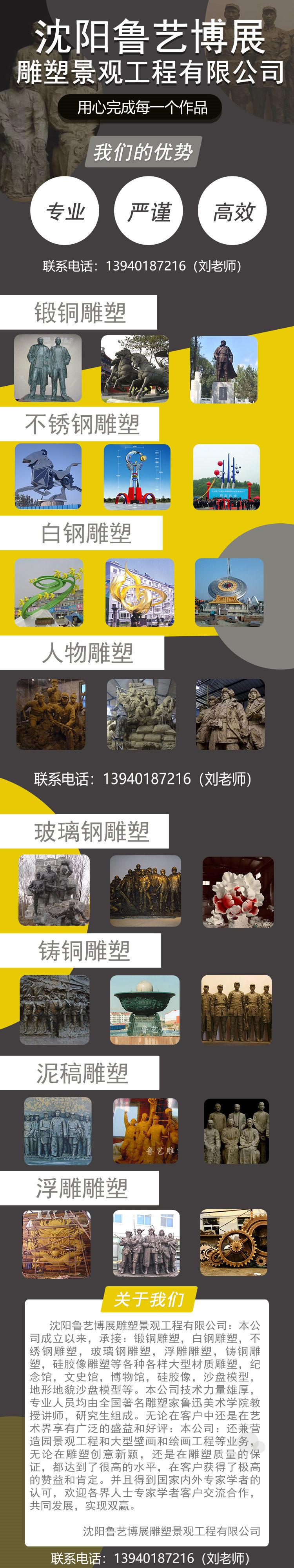 主营:雕塑工程、景观工程、装饰装修工程安装、施工、设计;绘画、美术设计服务;白钢、铁艺焊接;建筑材料销售;