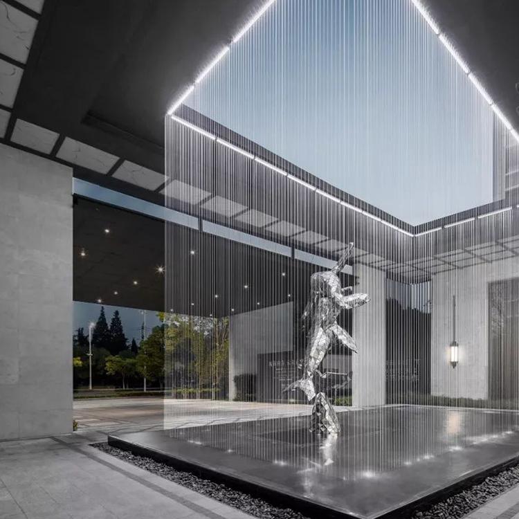 户外大型不锈钢雕塑学校园林广场鹿月亮圆环镂空球水景观浪花长春