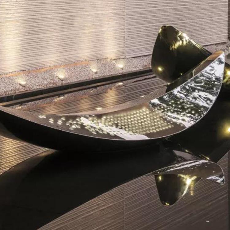 户外园林不锈钢圆环喷雾雕塑定制镜面发光月亮抽象镂空圆形大摆件沈阳