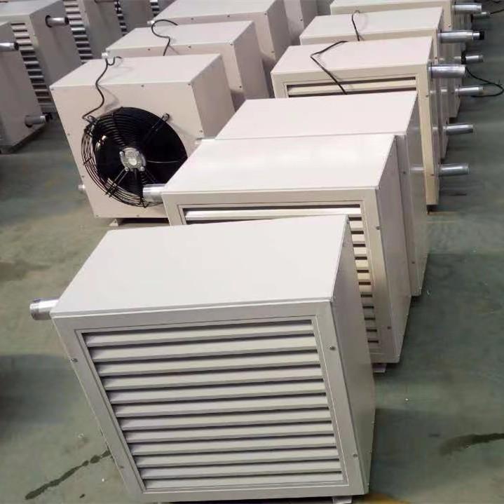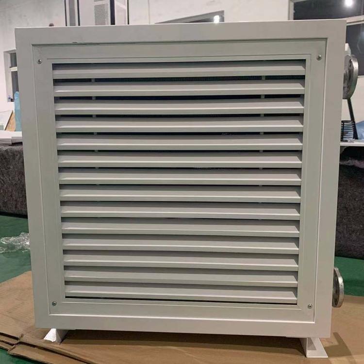 TS热水暖风机是以中低温热水(55-75℃)为热媒的采暖设备。该型暖风机主要由外转子轴流风机、热交换器、格栅风口、壳体等组成,散热器均为铜管串铝翅片,热媒由下部的接管进入,上部的接管排出,热量经管壁传导绕在铜管外表面的铝翅片上与空气热交换,叶轮由电动机带动,迫使空气流经排管外翅片,由此获得热量,从而使空气温度升高。