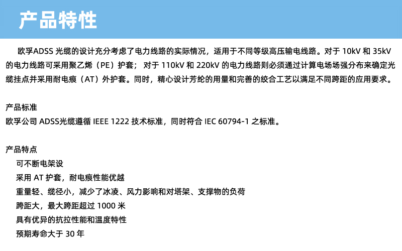 品牌 欧孚 型号 ADSS光缆