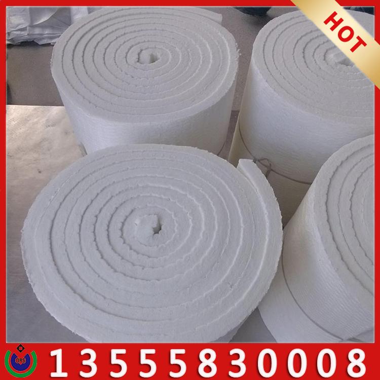 由含有一定比例粘结剂的硅酸铝毡坯经过固化室热风穿透定型、纵横切、打卷包装工序制成。