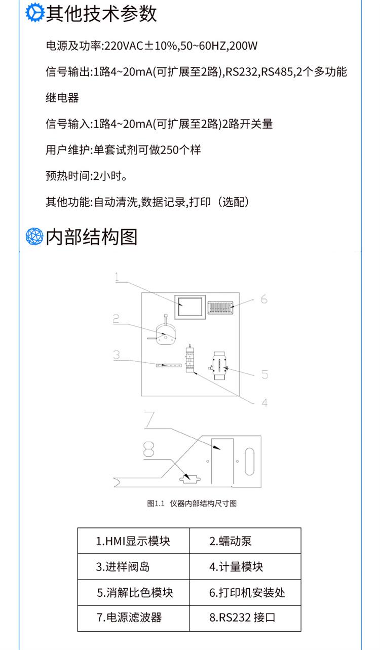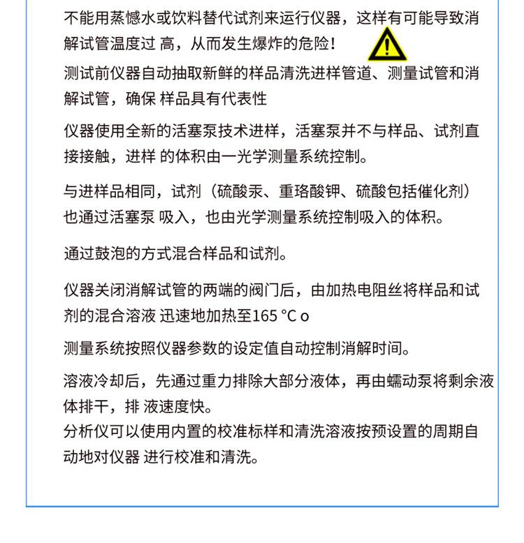 | 测量精准度 | >30mg/L时,小于检测值的10 | 消解时间 | 15、30、120 |