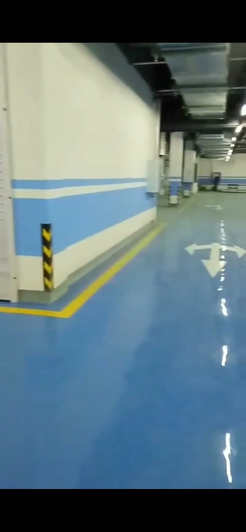 5、自流平面漆:用自流平环氧面漆施工一至两道,使整体表面光亮平整