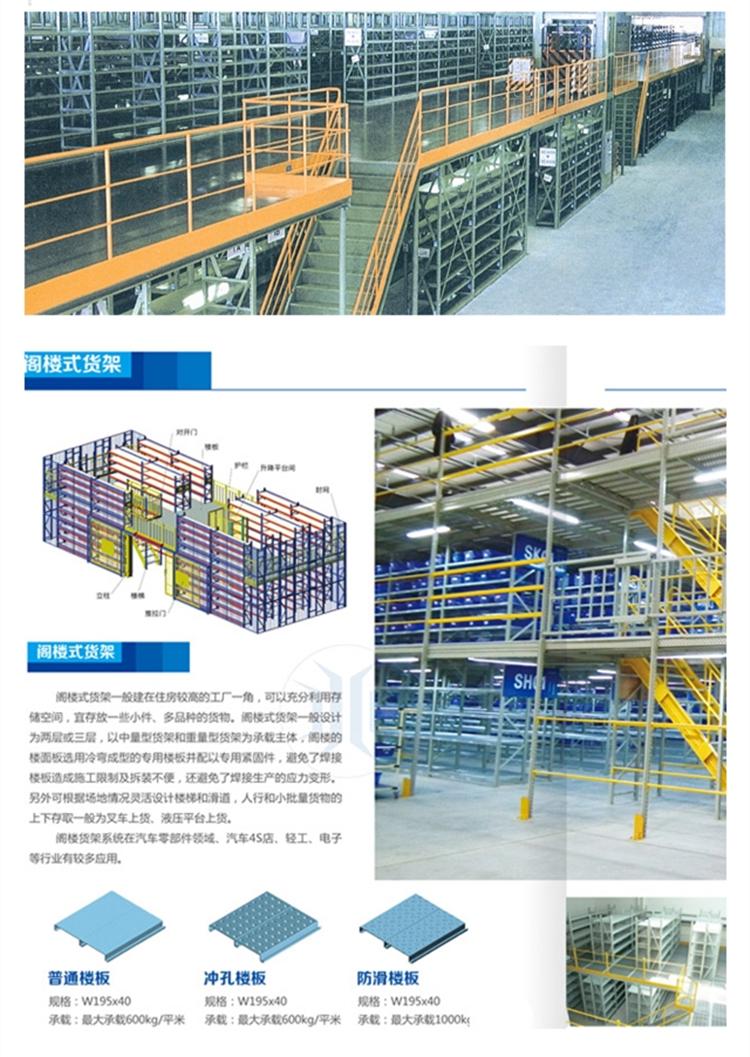 阁楼货架是一种充分利用仓库上层空间的简易货架。在已有的货架或工作场地上建造一个中间阁楼以增加储存的面积。阁楼楼板上一般可放轻泡及中小件货物或储存期长的货物,可用叉车、输送带、提升机、电动葫芦或升降平台提升货物。阁楼上一般采用轻型小车或托盘牵引小车作业。