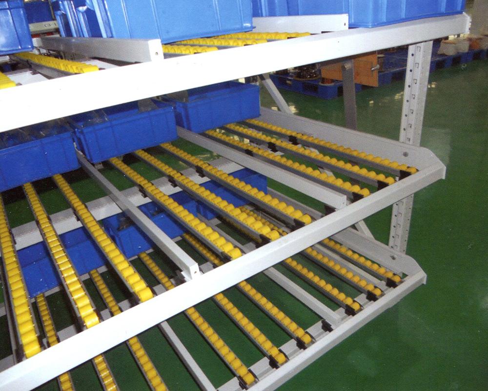 流利式货架又称滑移式货架,采用辊轮铝合金,钣金等流利条,利用货物台架的自重,从一边通道存货,另一边通道取货实现先进先出,存储方便,以及补货多次取货。流利架存储效率高,适合大量货物的短期存放和拣选。可配电子标签,实现货物的轻松管理,常用滑动容器有周转箱,零件盒及纸箱,适合大量货物和短期存放和拣选。适合大量货物的短期存放和拣选。广泛应用于配送中心、装配车间以及出货频率较高的仓库。