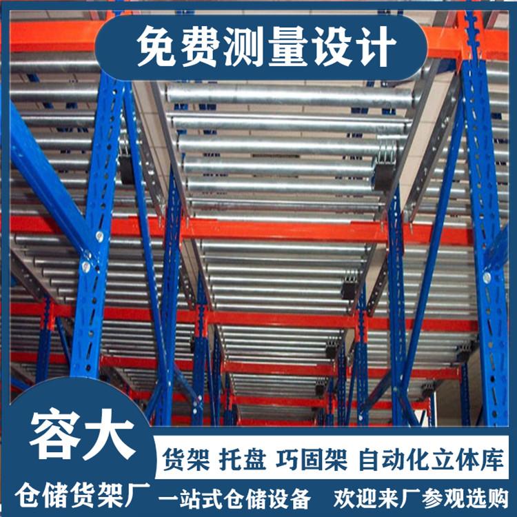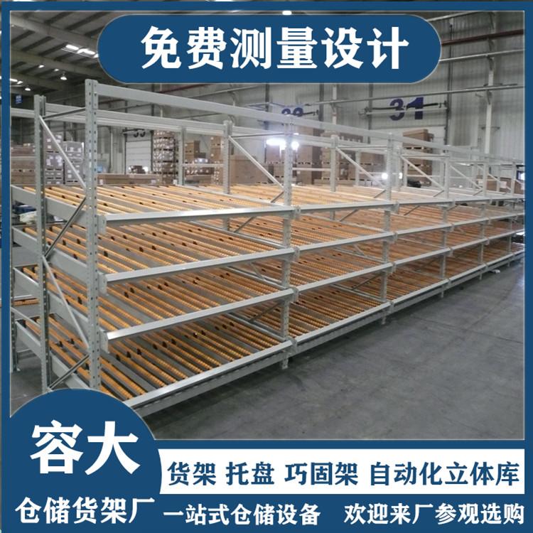 流利式货架又称滑移式货架,采用辊轮铝合金,钣金等流利条,利用货物台架的自重,从一边通道存货,另一边通道取货实现先进先出,存储方便,以及补货多次取货。流利架存储效率高,适合大量货物的短期存放和拣选。可配电子标签,实现货物的轻松管理,常用滑动容器有周转箱,零件盒及纸箱,适合大量货物和短期存放和拣选。适合大量货物的短期存放和拣选。广泛应用于配送中心、装配车间以及出货频率较高的仓库。