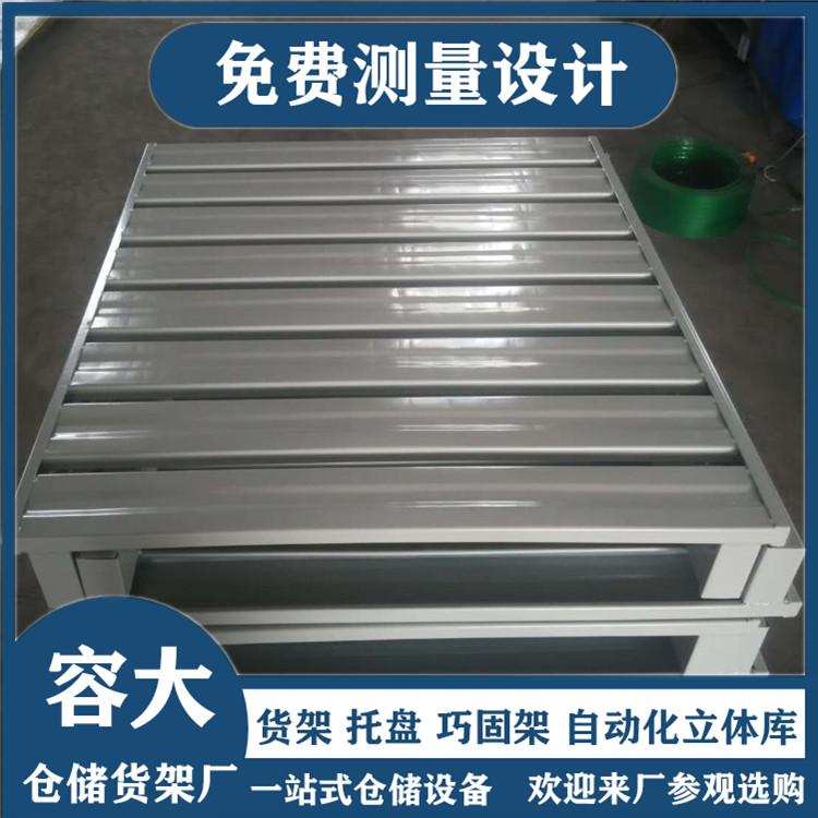 钢制托盘是传统木托盘、塑料托盘的理想换代产品,适合叉车作业,存取货物方便。主要用于多用途的地面存储、货架存储及货物联运、周转等轻金属托盘系列。集装、堆放、搬运和运输的放置作为单元负荷的水平平台装置。钢制托盘是现在工业重要的仓储与运输辅助设备。钢制托盘主要材料为钢材或镀锌钢板,经专用设备成型,各种型材互相支撑,铆钉连接加强,再经气体保护焊焊接而成。