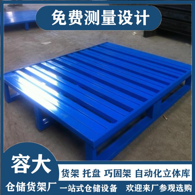 基本结构由单层铺板下设纵梁或垫块、支腿等所组成,托盘的高度以能方便使用叉车或托盘搬运车为原则;在货架上使用时磨擦系数较大,载重状态下不易滑动;钢性好,承载量大,经久耐用,使用寿命长;一般根据实际需求定做。