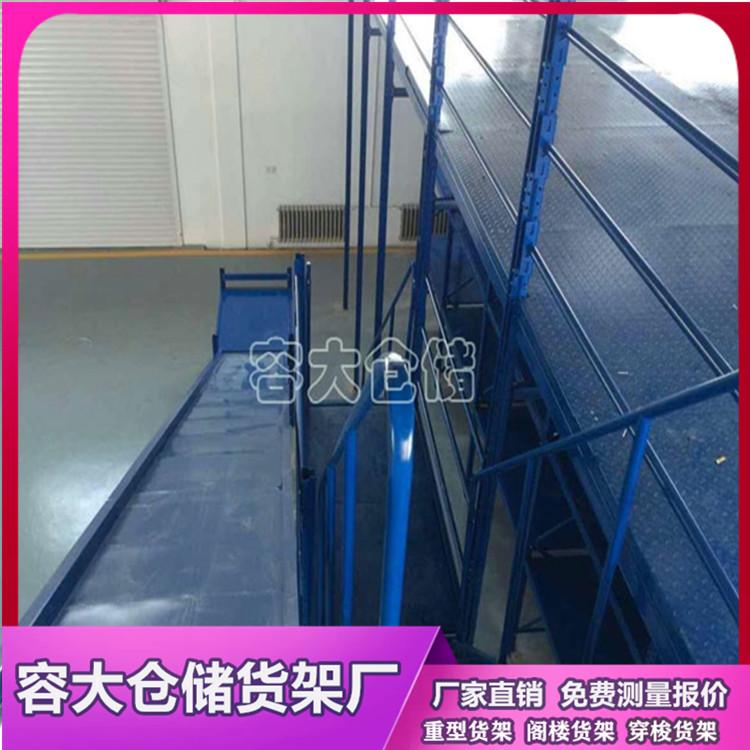 阁楼式货架以中量型货架和重量型货架为承载主体,阁楼的楼面板选用冷弯成型的专用楼板并配以专用紧固件,避免了焊接楼板造成施工限制及拆装不便,还避免了焊接生产的应力变形。可根据场地情况灵活设计楼梯和滑道。满足不同场合不同货物的存放需求。