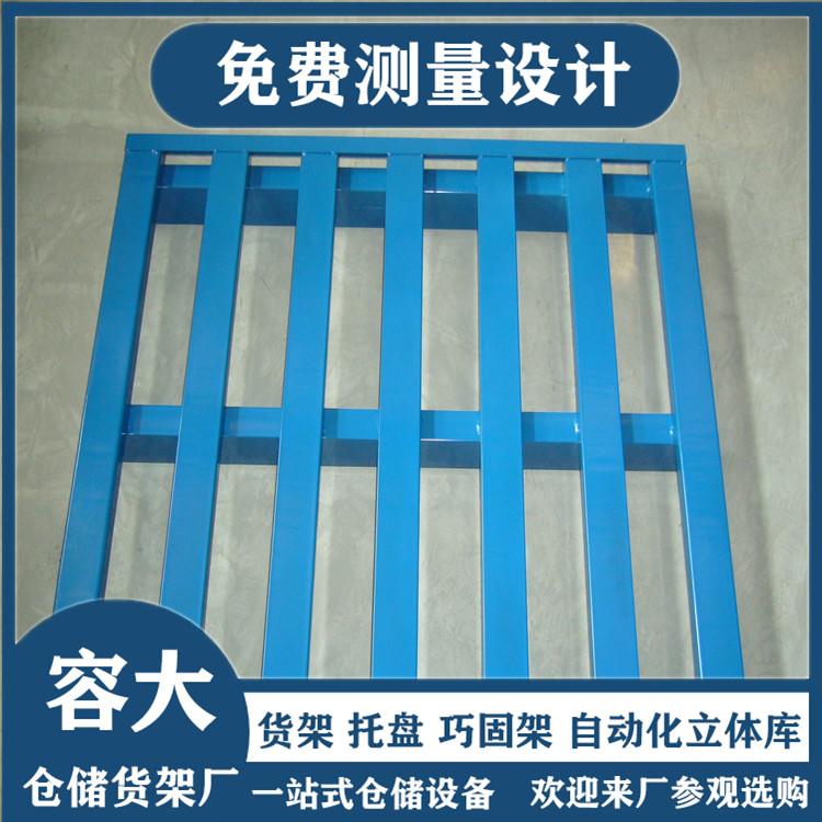 基本结构由单层铺板下设纵梁或垫块、支腿等所组成,托盘的高度以能方便使用叉车或托盘搬运车为原则;在货架上使用时磨擦系数较大,载重状态下不易滑动,使用安全可靠;钢性好,承载量大,经久耐用,使用寿命长;一般根据实际需求定做。