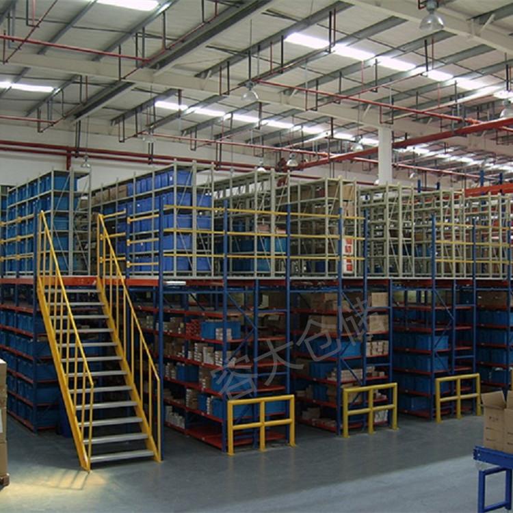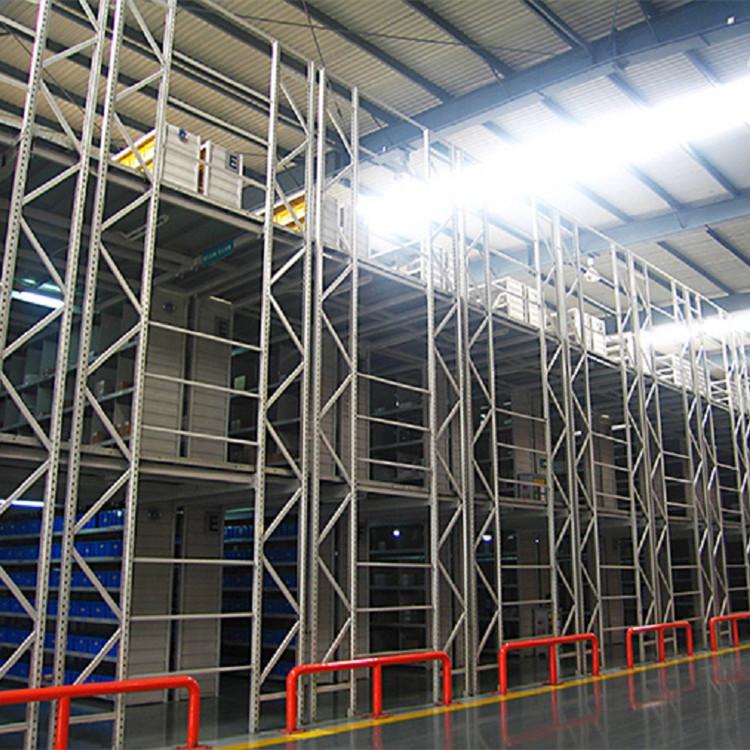 阁楼式货架一般建在住房较高的工厂一角,可以充分利用存储空间、宜存放一些小件、多品种的货物。阁楼式货架一般设计为两层或三层,以中量型货架和重量型货架为承载主体,阁楼的楼面板选用冷弯成型的专用楼板并配以专用紧固件,避免了焊接楼板造成施工限制及拆装不便,还避免了焊接生产的应力变形。另外可根据场地情况灵活设计楼梯和滑道,人行和小批量货物的上下存取一般为叉车上货、液压平台上货。阁楼货架系统在汽车零部件领域、汽车4s店、轻工、电子等行业有较多应用。