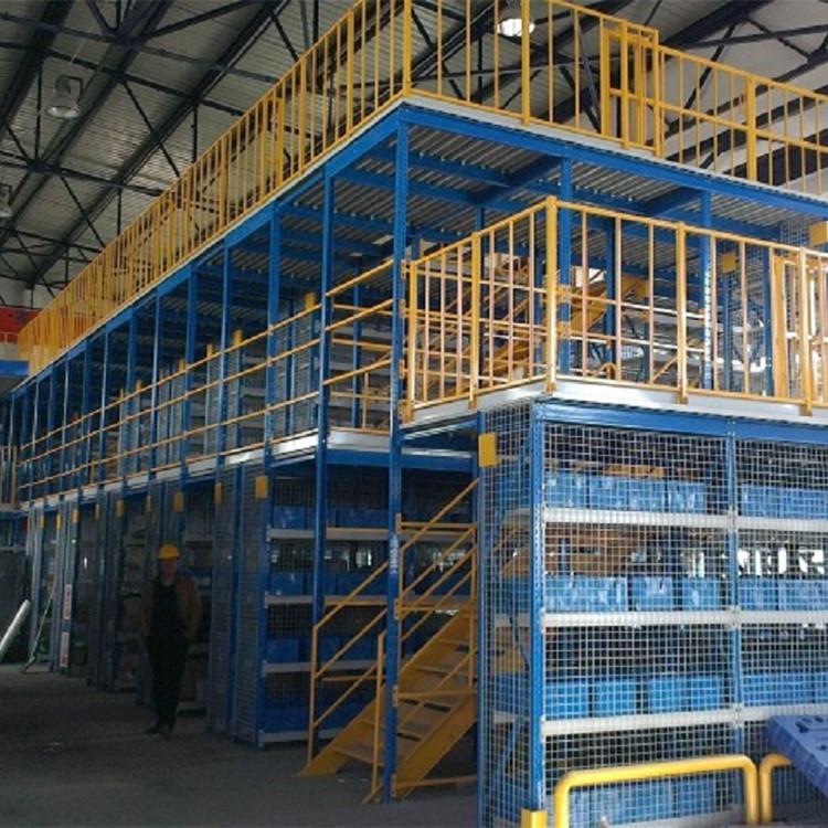 5、下层是货架形式,上层可以是平台也可以是货架的结构。底层货架既可以存储物料又是楼面的支撑,灵活设计。