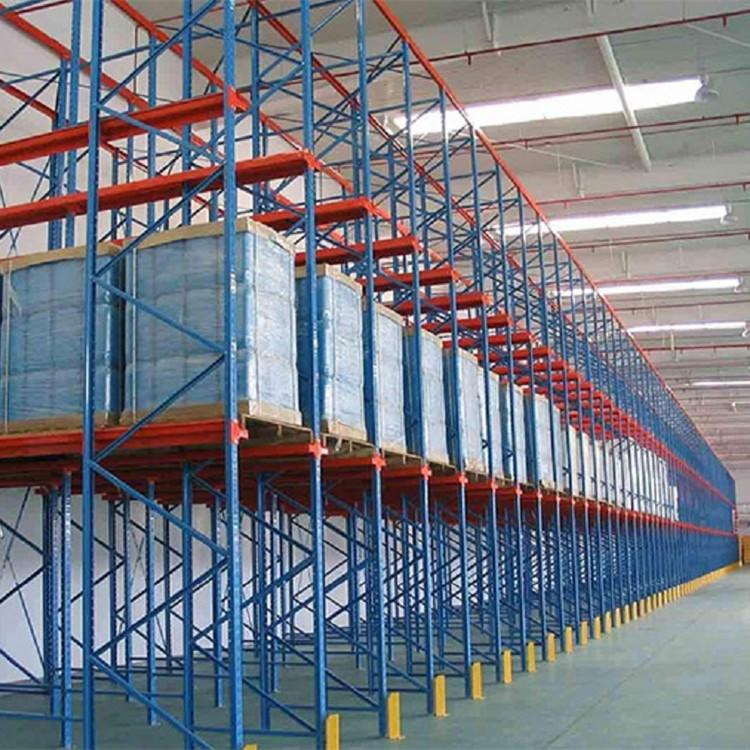 贯通货架适用于存储品种单一,数量多,出入库流量大的货物,此类货架一端以背拉封闭,另一端为进出货口,叉车在通廊内行走,可实现先进后出的存取方式,此类货架极大提高了库房的利用率。