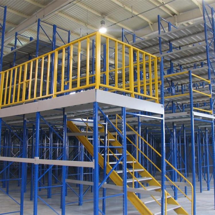 5、下层是货架形式,上层可以是平台也可以是货架的结构。底层货架既可以存储物料又是楼面的支撑,灵活设计。
