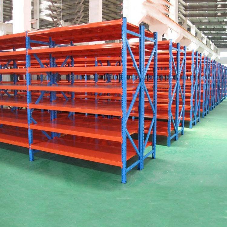 中量型货架,属于仓储货架的一种,搁板货架类型。是按货架的承载量来区分与命名的。按照这一划分原则中型货架介于轻型货架和重型货架之间,故名中型货架。通常货架承载150kg/-600kg层(货架载荷绝大多数是以层为单位的承载量计算)。