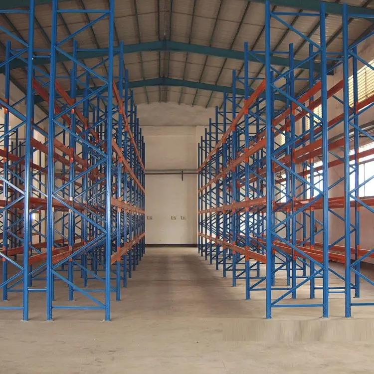 以立柱片+横梁形式的全组装结构,结构简明有效。每两组货架背靠背放置,每一列货架设计一条通道(通道的宽度视选用叉车而定)。货物存取便捷,利用率较高,适合多品种货物的大量存储