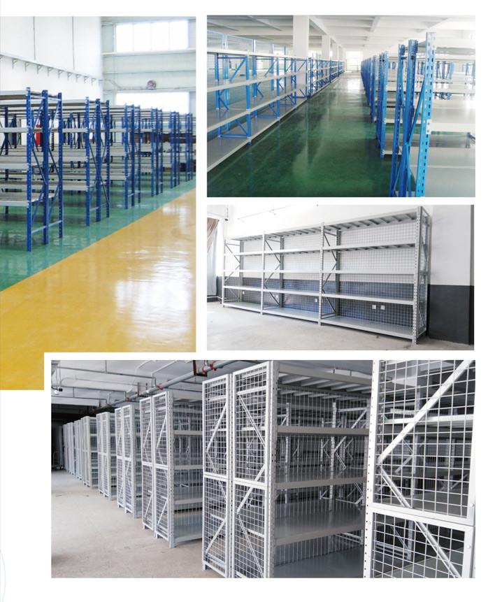 2)中型搁板式货架;单元货架每层每层载重量一般在200-500kg之间