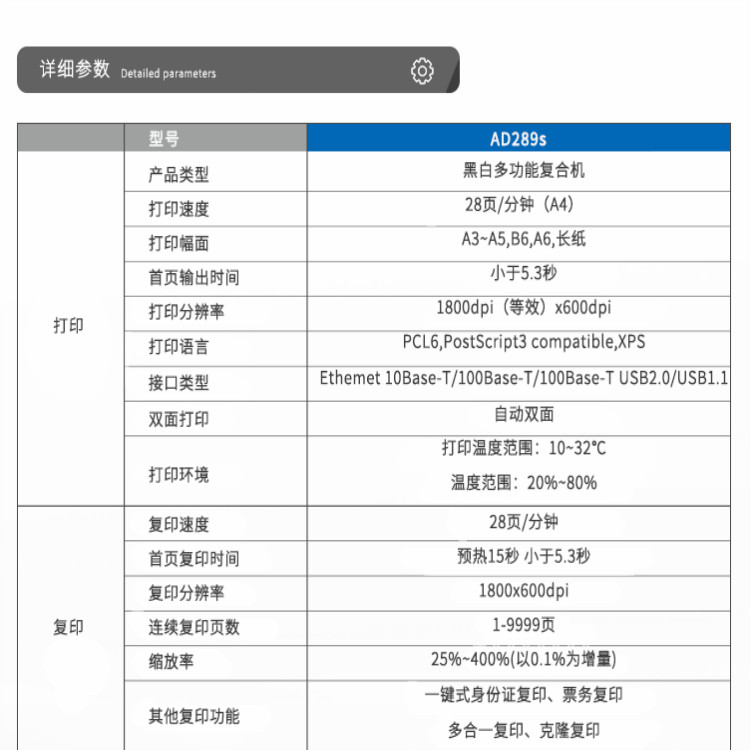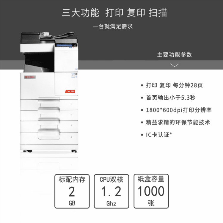 震旦AD289s 黑白多功能一体机,可满足打印/复印/彩色扫描/无线打印