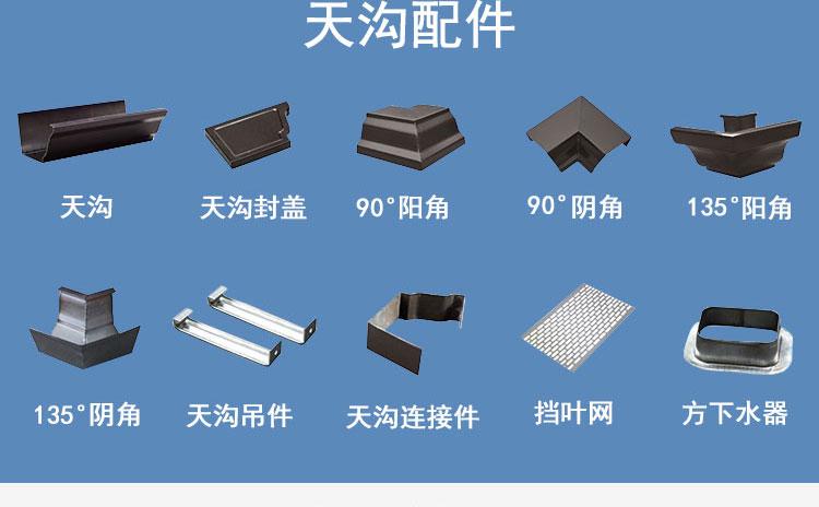 • 主营产品: 天沟、檐沟、落水管、封檐板、成品天沟、成品檐沟、彩铝落水管、彩铝雨水管、铝合金成品天沟