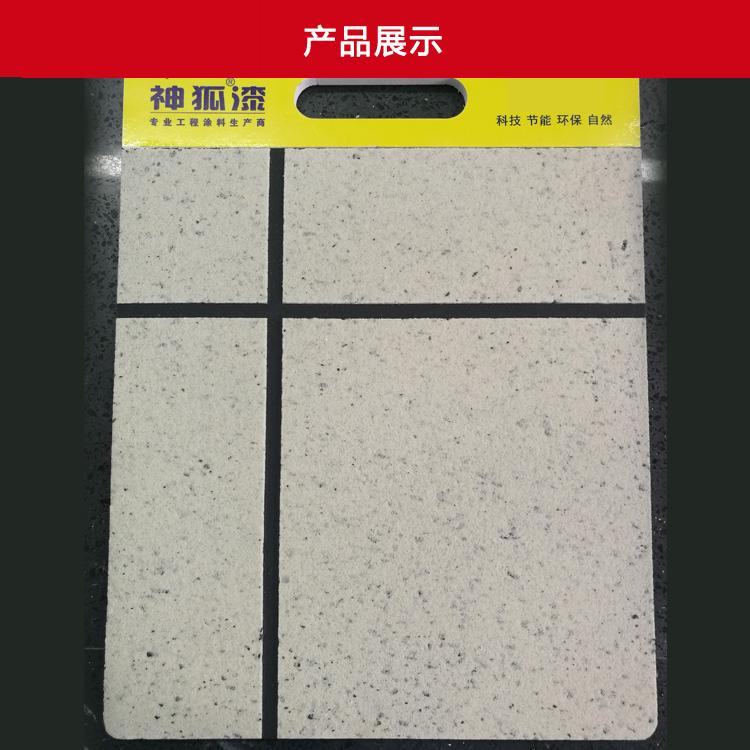 神狐天然真石漆,具有天然真石的自然色泽,对建筑的造型花样、色彩、面积大小、装潢等美术运用毫不限制,能够呈现出一种呈现出生动逼真、回归自然的装饰效果。批次间色差控制能力强,遮盖力高,施工性能好,省料更经济造价低于天然石材,符合国家节能减排政策。以快速喷涂作业施工简便、安全,特别对于造型复杂的异型施工优势更为明显。