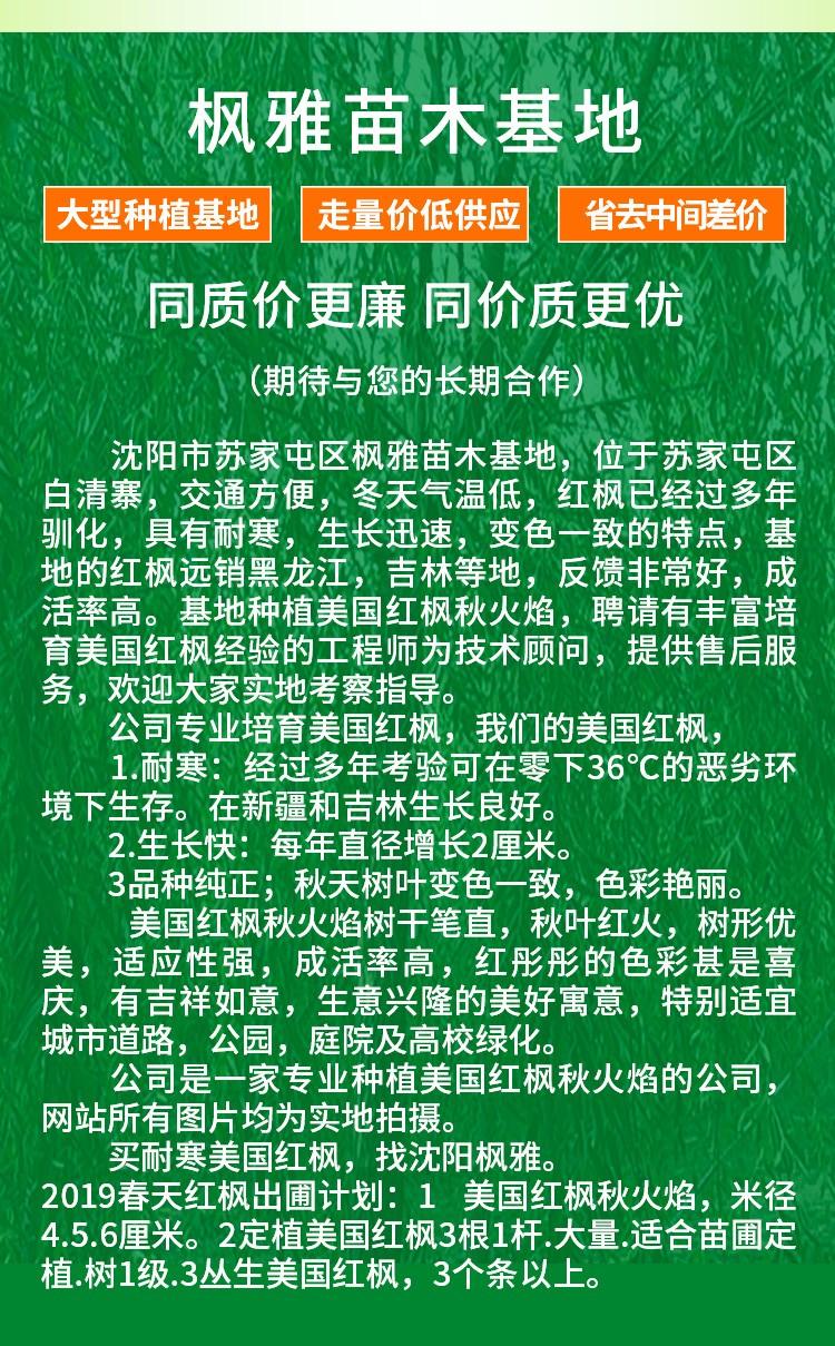 红枫乔木 专注繁育美国红枫秋火焰 沈阳市枫雅苗木基地