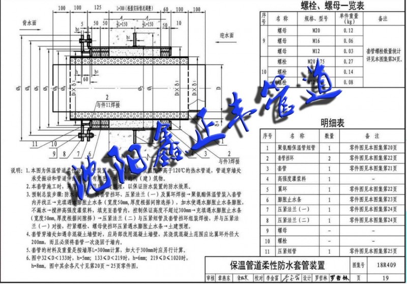 柔性防水套管由法兰压盖、密封圈、法兰套管组成