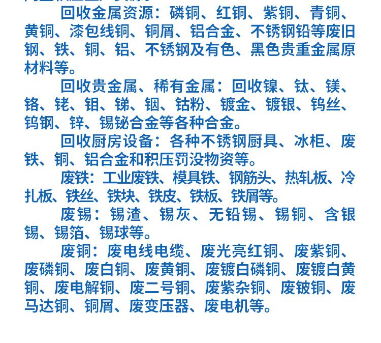 主营:再生资源回收(不含固体废物、危险废物、报废汽车等需经相关部门批准的项目),机 械设备、化工原料(不含